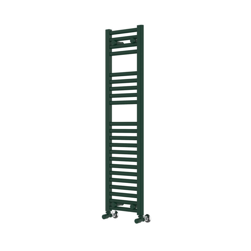Upgrade your bathroom or kitchen with the Capri Vertical Dual Fuel Towel Rail in Moss Green. Enjoy the perfect combination of warmth, style, and functionality.