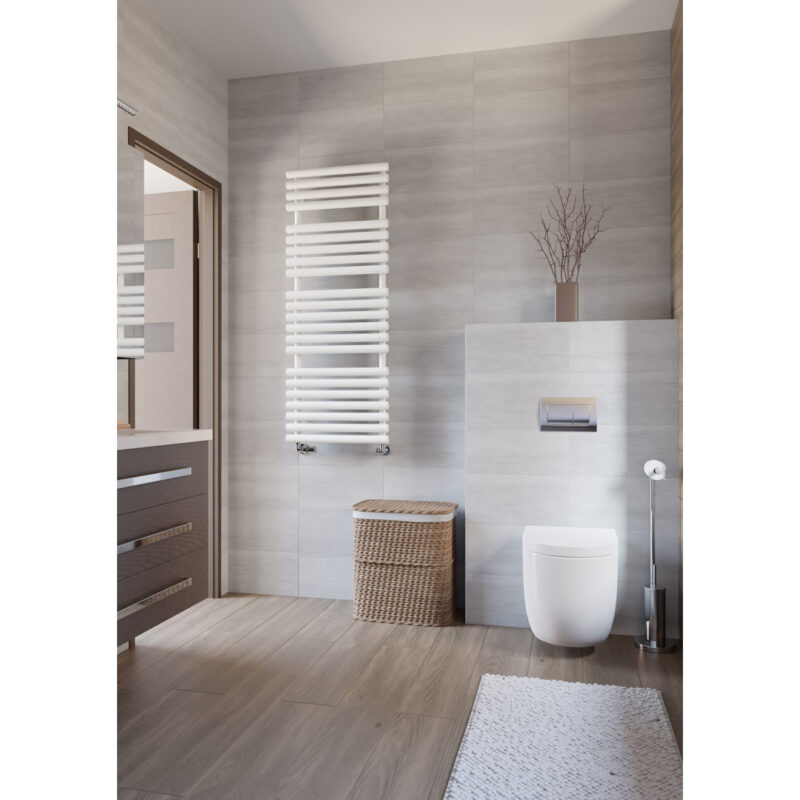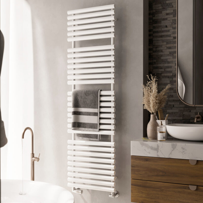 Upgrade your bathroom with the Corella Vertical Towel Rail in white. Its stylish design, efficient heating capabilities, and durable construction make it the perfect choice for any modern bathroom.
