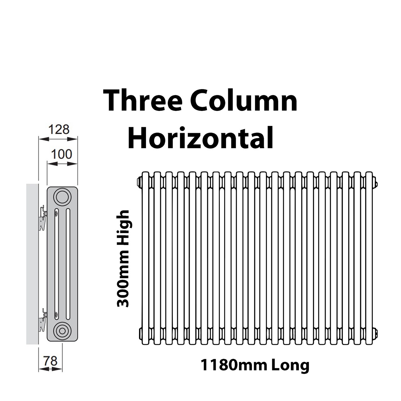 Crafted from durable mild steel, this horizontal radiator measures 300mm in height and 1180mm in width, making it a versatile choice for a variety of spaces. Whether you need to heat a cosy bedroom, compact office, or stylish bathroom, this radiator is sure to deliver.